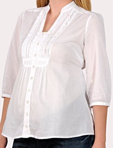 3/4 SLEEVE MANDARIN COLLAR RUFFLE FRONT BUTTON FRONT SOLID FABRIC PINTUCK TEXTURED FABRIC COTTON VOILE MATERNITY SHIRT MACHINE WASHABLE IMPORTED